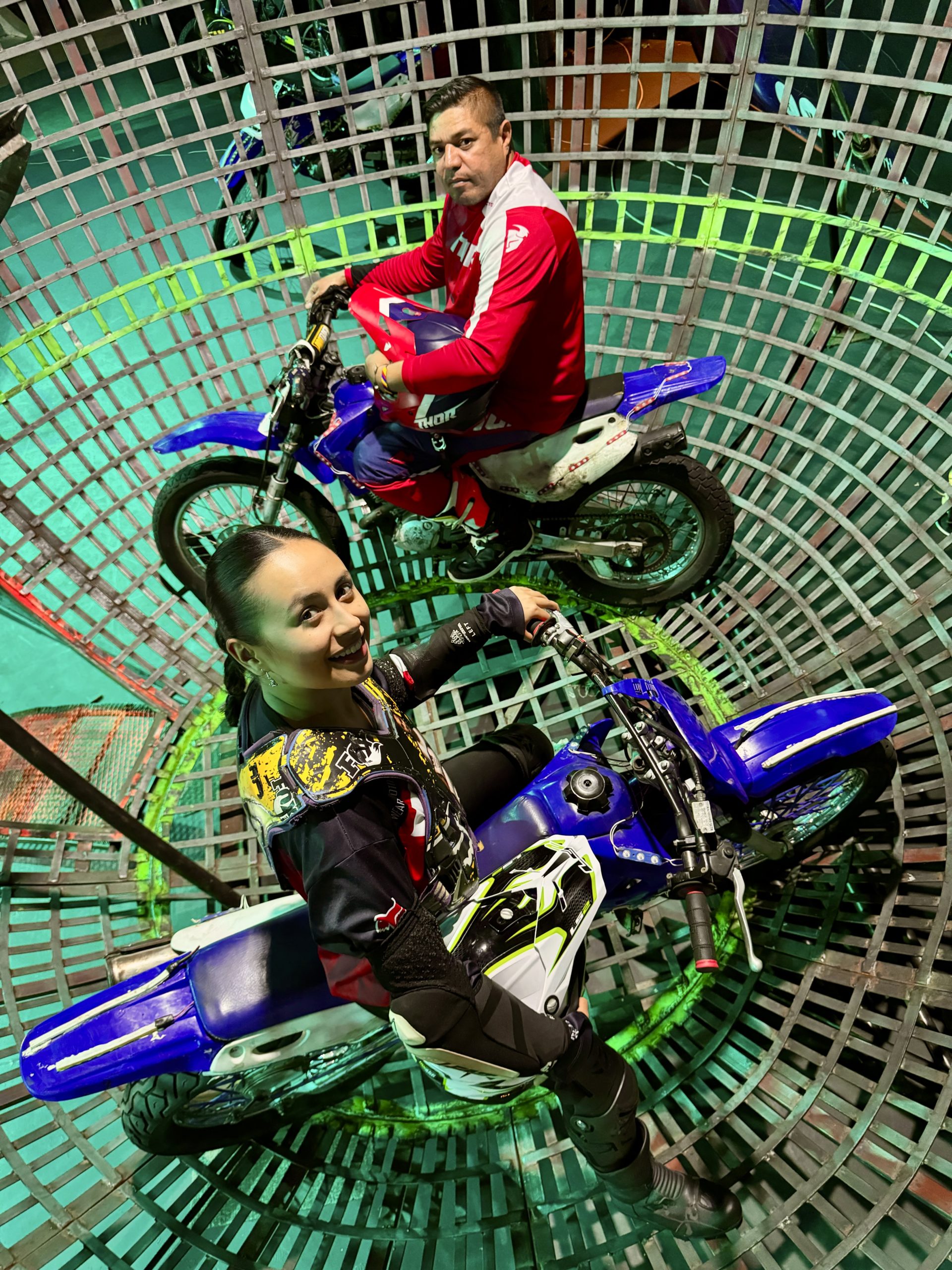 Eine Motorradkugel – den Globe of Death – zu zeigen, in der die Fahrer ihre rasanten Runden drehen und mit riskanter Streckenführung immer mal Grenzen des scheinbar Unmöglichen überfahren, war dem früheren Stuntman und Clown Maximo Luftman nicht mehr genug. Statt es „Benzin, Benzin“ und seine Abgase im Zelt riechen lassen zu müssen, hat er fürs Publikum nachhaltig die nächste Generation Zweirad Globe-tauglich gemacht: In Regensburg rasen fünf Elektro-Bikes pfeilschnell durch die weiße Eisenkugel. Und weil die so leise sind, ertönt für den Hummelflug der hartgesottenen Biker als Kontrastmusik Klassisches und rundet die aufgeladene Stimmung ab.